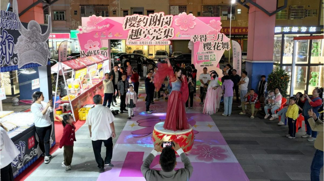 3月21日19时,东莞谢岗镇泰潮流文创园上演文旅融合突围战。在"樱约谢岗趣享莞集"主题嘉年华现场,超百个非遗火器迸发的星火与LED樱花矩阵交相辉映,镇领导班子与千名市民共同见证这场"文旅+夜经济"的颠覆性实验。