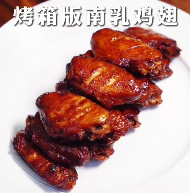 ① 鸡翅划刀,用南乳鸡翅酱腌制半小时;