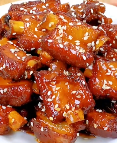 秘诀:珠江桥牌红烧酱汁头道酿造酱油科学配比,无需额外加生抽 / 老抽,酱香与糖香平衡,排骨肥而不腻,色泽红亮诱人。