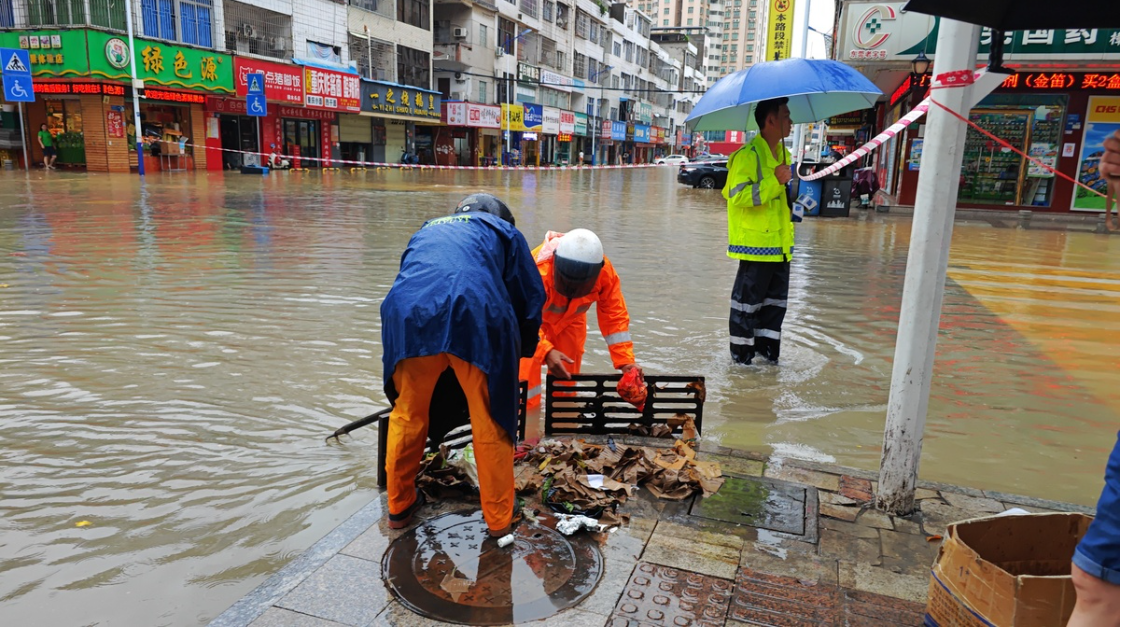 滂沱大雨持续冲刷着东莞街巷。8月4日12时50分,樟木头镇防汛应急响应从四级骤升三级,《应急响应升级通知》迅速传遍全镇。此刻樟洋社区银洋路段,民兵陈敏智正徒手掏挖堵塞排水口的枯枝,雨水顺着他的迷彩帽檐成串滴落。“雨声就是警报!”他抹了把脸继续清理,身后积水位正以肉眼可见的速度下降。三公里外的镇中心天桥下,专武干部何俊其半个身子浸在湍急的水流中,与同事合力搬开卡在下水道的垃圾箱。这些身影构成暴雨中最坚实的防线——当日全镇未发生因水浸导致的伤亡事故。