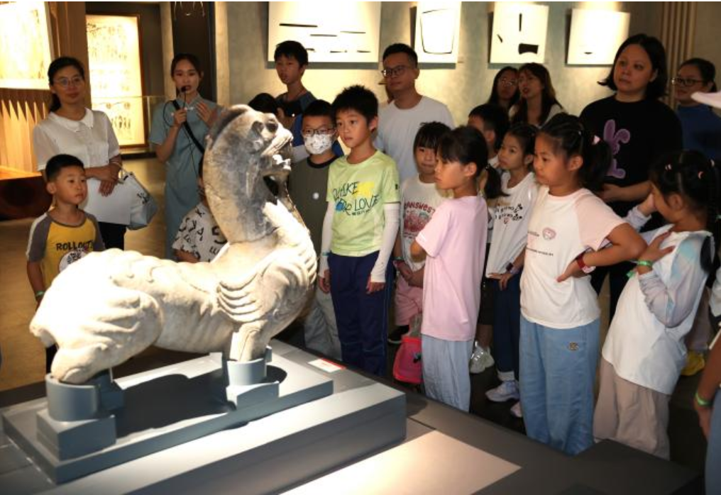 玻璃展柜里汉代陶俑的斑驳纹路,映着孩子们踮脚张望的倒影。8月16日上午,松山湖望野博物馆《时间·图景》展厅内,十多个家庭围在“文明打卡框”前——父母举起手机,定格孩子模仿文物拱手作揖的瞬间。“这叫长幼有序。”五岁的朵朵奶声奶气解释,她刚在展柜前听妈妈讲过青铜礼器“盉”的用途。这场由松山湖宣教局策划的“家风文明City Walk”,正将《东莞市文明行为促进条例》悄然融入生活场景。