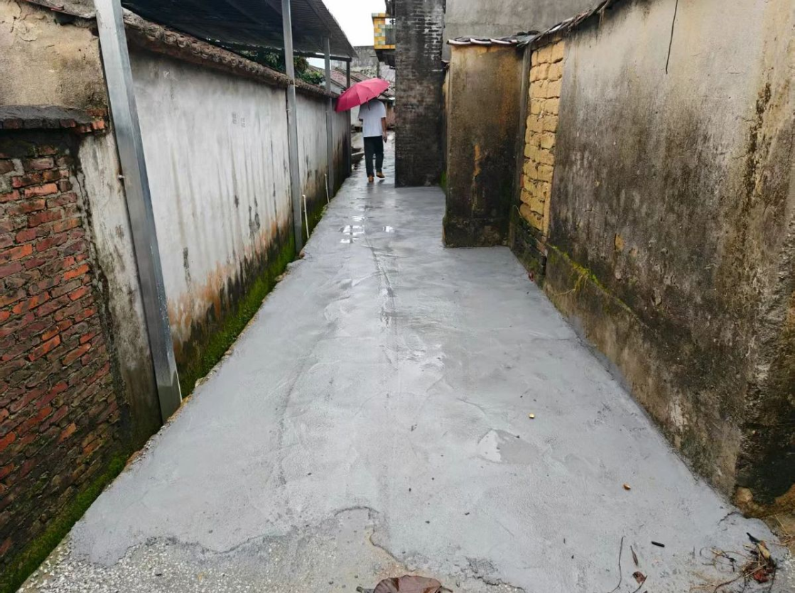 真正的改变发生在巷道地面。针对雨水和空调水积存难题,施工队开凿排水沟槽,铺设水泥硬化层。目前全村89处巷道完成改造,累计超2700平方米的泥泞地面变成平整坡面。住在巷口二十年的刘阿婆指着新地面:"以前下雨水漫到脚踝,现在雨水直接流进排水沟,连青苔都不长了。"