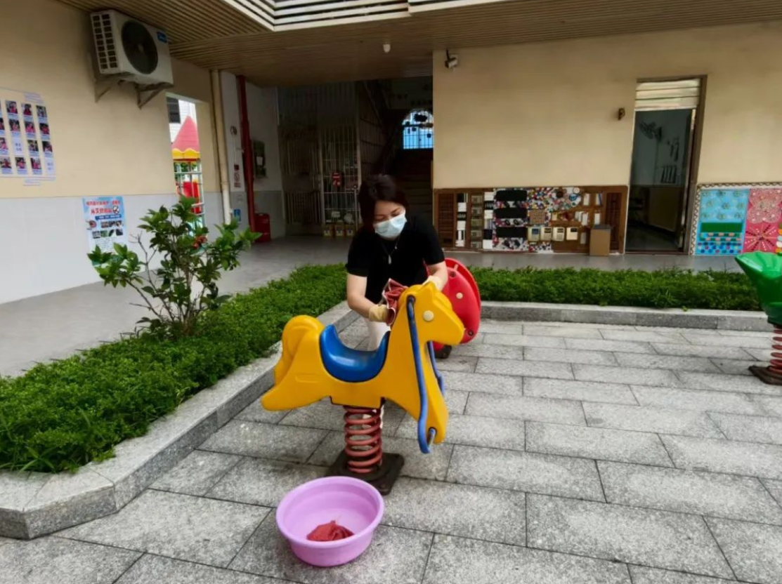 在桥头镇中心幼儿园,保洁人员正使用专业消毒剂对教室内的桌椅、玩具架等高频接触点进行细致擦拭和消毒。紫外线消毒后的绘本被整齐摆放在书架上,午睡室的小床也经过了全面清洁与消杀。食堂作为关键区域,工作人员重点清理了排水沟和操作台的缝隙,彻底清除了食物残渣,以防止蚊虫滋生。户外绿化带中,除草和清积水工作同步进行,垃圾桶周边实施了高频次消杀,有效切断了蚊虫栖息和繁殖的环境。幼儿园负责人表示,为保障孩子们的健康,每天至少进行一次全园消杀,特别是绿化带、排水沟、卫生间等重点区域。开学后,随着孩子们户外活动的增多,幼儿园还将为学生及时喷洒防蚊水,全面做好防蚊灭蚊工作。