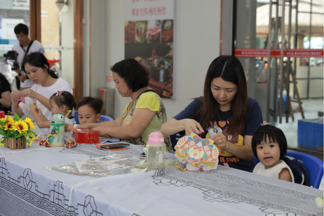 在手工DIY体验区,多组亲子家庭制作中秋灯笼,孩子们或将竹篾弯成一轮圆月,或用绢纱绘出玉兔,抑或在扇面上挥洒出独属于中秋的银河……在体验传统技艺的过程中,传递出浓浓的节日温情。