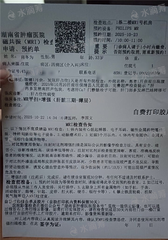 我叫肖冬为,一个普通的湖南湘西汉子,家住保靖县这个被群山环抱的小城。此刻,我坐在湖南省肿瘤医院的病房里,望着窗外偶尔掠过的飞鸟,第一次如此强烈地渴望活着——不是为了自己,而是为了那个每天放学回家,第一件事就是扑进我怀里的大儿子;为了那个还在襁褓中咿呀学语的小女儿,为了那个在田里劳作了一辈子、却还要为我担心的老父亲。