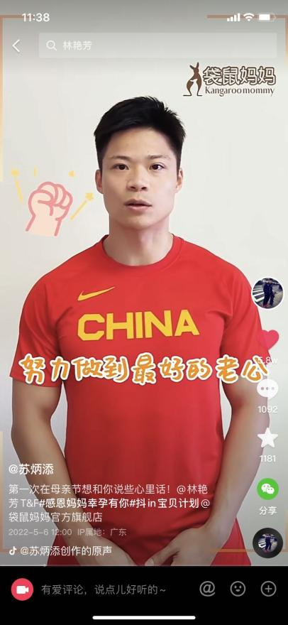 苏炳添作为运动员,在妻子孕期和孩子的养育上长期缺席,让他对妻子有更多愧疚和感恩。所以这次母亲节,苏炳添与袋鼠妈妈也是一拍即合,从未在母亲节公开场合发声的他,这次母亲节发出了“或许我是别人眼中的苏神,但是我只是你那个努力做到最好的老公”的宣言。