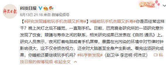 今天,一个#研究发现睡前玩手机伤眼又折寿#的话题登上微博热搜。