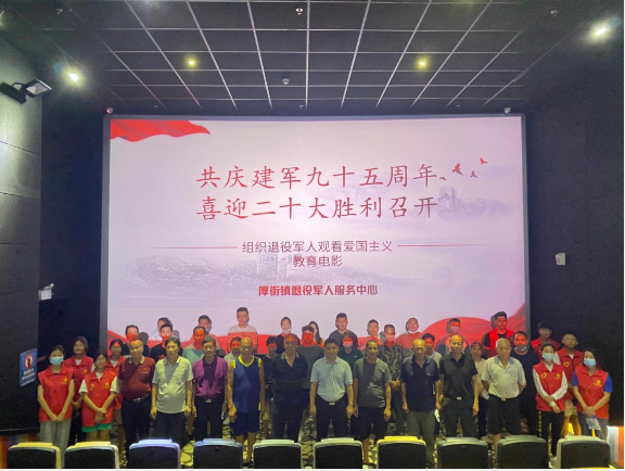 在中国人民解放军建军95周年到来之际,7月23日,厚街镇退役军人服务中心组织退役军人代表,观看爱国主义教育电影《狙击手》,铭记革命历史,传承红色基因,弘扬爱国主义精神。
