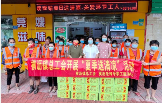 连日来,横沥镇总工会持续开展“夏季送清凉”活动,慰问高温天气下坚守岗位的一线职工,感谢他们的辛勤劳动,并送上防暑慰问品。