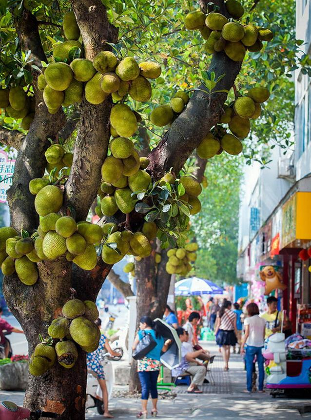 荔枝、龙眼、扁桃、木菠萝、芒果等等满大街都是……