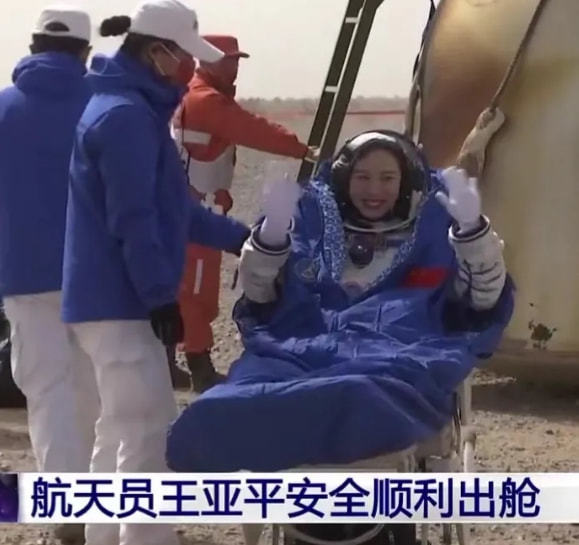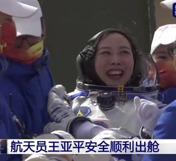 4月16日上午,神十三安全着陆,三位航天员安全出舱,身体状态良好。航天员王亚平出舱后面带灿烂的笑容,表白女儿称:“摘星星”的妈妈回来了!
