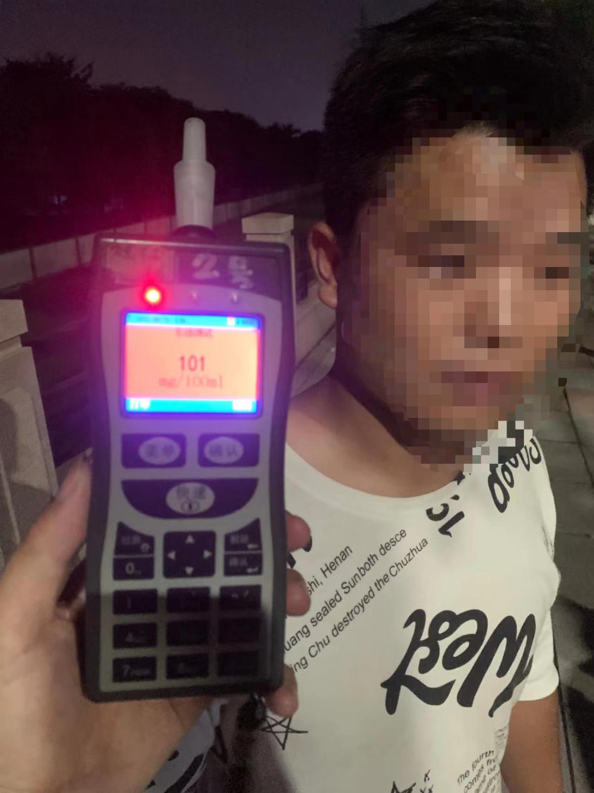 经过酒精呼气测试,酒精检测设备显示该驾驶员血液酒精浓度为101mg/100ml,遂将其带往医院进行抽血检验,检测结果为105.7mg/100ml。属于醉酒驾驶。