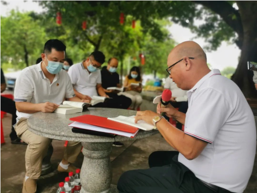 在山厦公园的大榕树下,该村的两委干部、党员、工作人员、学生一起学习《习近平谈治国理政》第四卷。在学习现场,该村的老干部张柱华结合自身从事农村工作的经历和山厦村的发展史,用深入浅出的语言、生动形象的案例,讲述了农村的发展变化和党的富民政策带来美好幸福新生活,引起了大家的深深共鸣。
