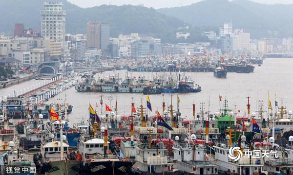 9月12日,浙江省舟山市普陀区沈家门渔港内,渔船纷纷回港避风。(签约供稿人/视觉中国/版权图片)