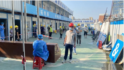 核酸检测进工地,既方便项目一线施工人员,又能减少施工人员与社会面交叉接触,切实做到防疫生产两不误。新地项目安全总监督郭永前告诉记者,“核酸检测进工地给我们施工现场提供了很大的帮助,既降低了交叉感染的风险,也缩短了我们的工人到核酸采样点路上的时间和采样排队等候的时间。下一步,我们将安全、防疫两手抓,稳步推进项目施工进度。”