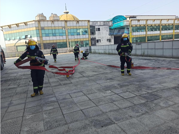 在演练后,消防队员还给参加演练的全体人员对灭火器、防毒面具、消防栓水带水枪等消防器具的使用,进行了详细的讲解跟实操演示。