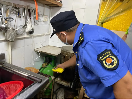 在裕宁社区(筹建),检查组就燃气使用安全工作对餐饮单位进行排查,重点对燃气泄漏报警器的安装使用、连接软管密封性、燃烧灶具使用是否过期进行检查,发现有的餐饮场所存在燃气报警器使用不当、燃气器具胶管管道老旧、压力阀门超期等问题,检查人员当即要求其迅速落实隐患整改。同时,检查人员还对燃气用户开展燃气安全使用常识和应急处置措施宣传,进一步提高燃气用户的安全防范意识。