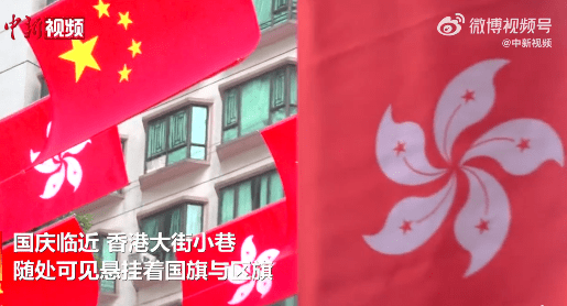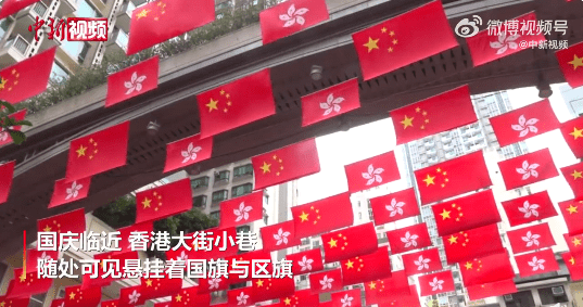 国庆临近,香港大街小巷随处可见悬挂着国旗与区旗,有些街道更是布置得张灯结彩。