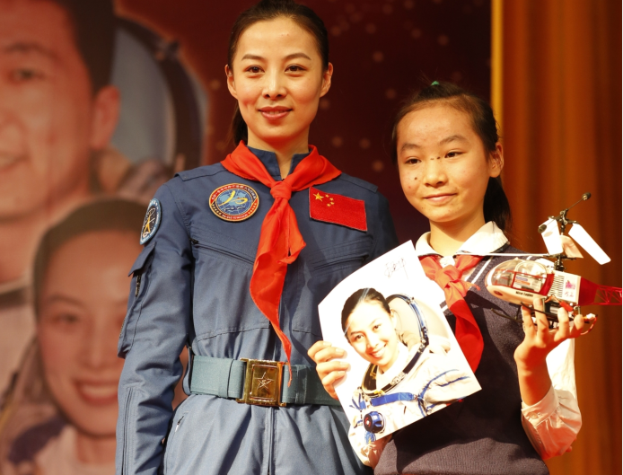 在互动环节,我幸运地被选中第一个提问,大脑一片混沌。我甚至带着略显怯懦的语气问最美的王亚平姐姐:“要怎么样,我才能成为一个像您一样优秀的人呢。”