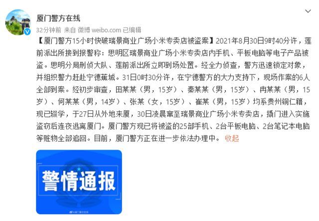 原标题:厦门6少年30秒洗劫小米专卖店