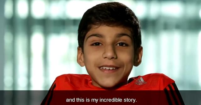 20岁的加尼姆·阿尔·穆夫塔(Ghanim Al Muftah)用双手支撑着身体,从球场一侧缓缓行来,与知名演员摩根·弗里曼饰演的旅行者汇聚于场地中央。