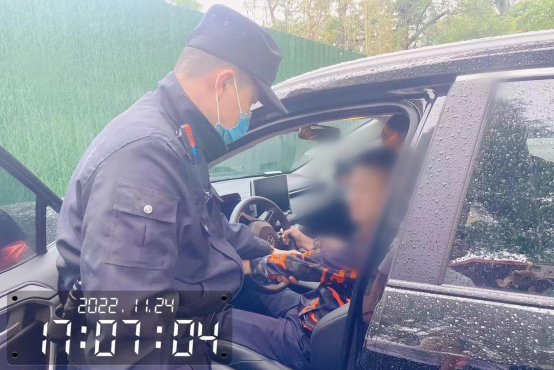队员到达现场后一边耐心安抚车内少年,并协助其将车辆熄火,一边向石碣公安分局及派出所报告,最后石碣派出所领导及巡警大队警力先后到场,警务人员成功联系上了该黑色丰田车的车主,及时控制住驾驶位的少年,并将其劝下汽车。