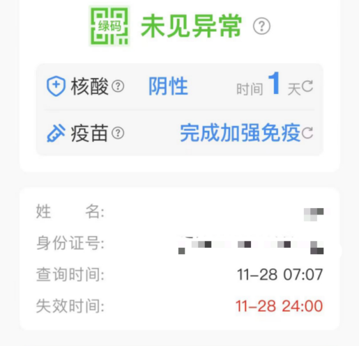 记者本人11月28日的健康码自查询结果