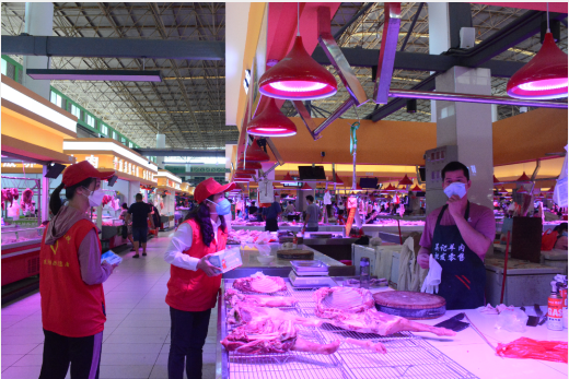 此外,志愿者们还到市场周边商铺,劝导商家必须压紧压实防疫主体责任,切实落实戴口罩、测温扫码等防疫措施,做到“码”力全开,严把“入口关”,以自己的“小行动”守护大家的“大健康”。