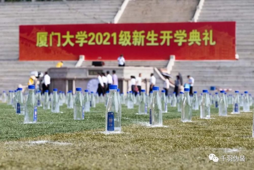 9月13日,厦门大学举行开学典礼,操场上本应由新生占据的位置空无一人,而是摆放着一瓶瓶“厦大百年校庆”矿泉水。有师生表示:“防疫需要,可以理解。矿泉水瓶来了,等于我也来了。”