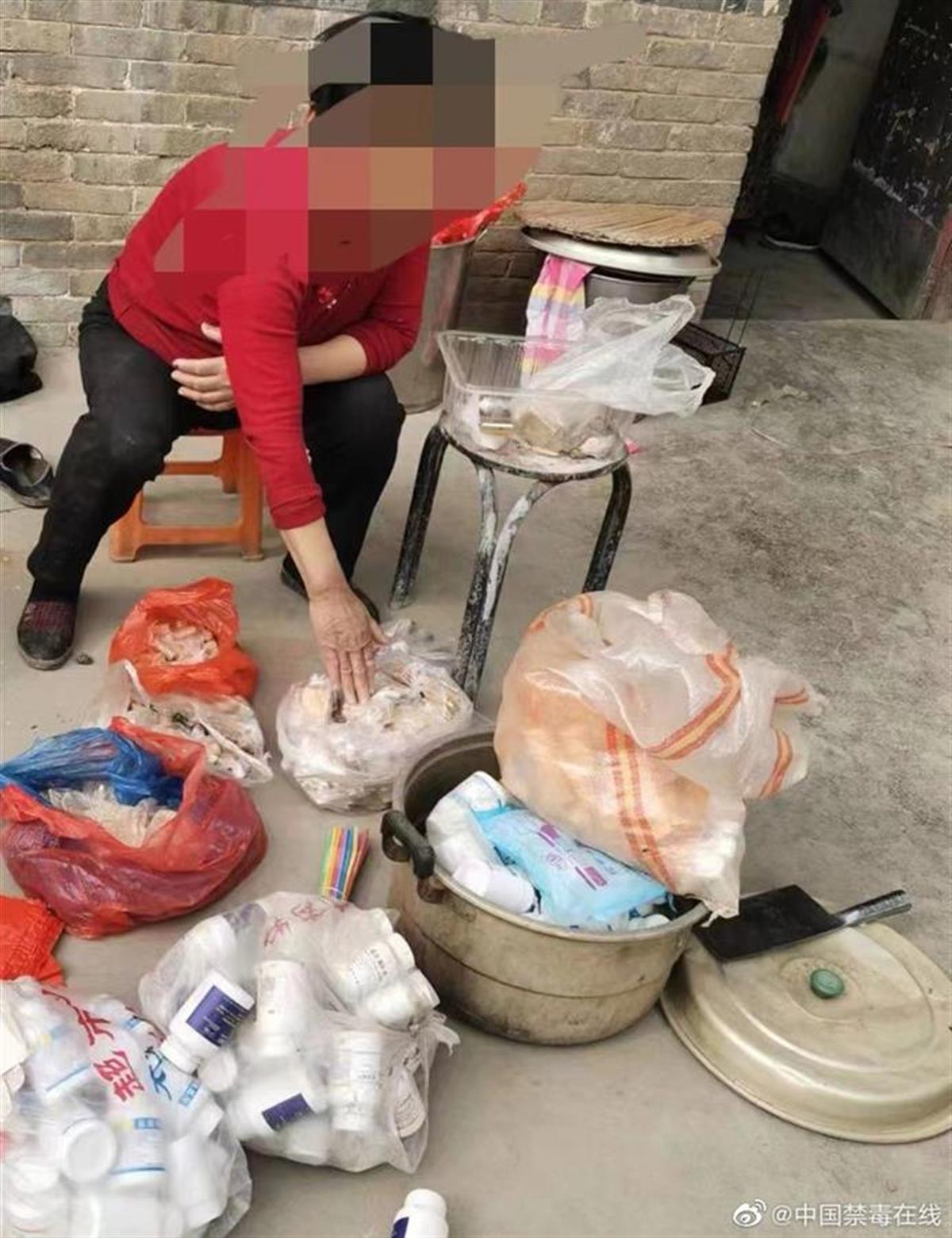 在自己家中,用铝锅熬制毒品并进行切割,然后售卖给卡车司机提神。近日,在陕西渭南,警方将一制毒的五旬农妇韦某抓获,并收缴毒品“锭锭”6400克。