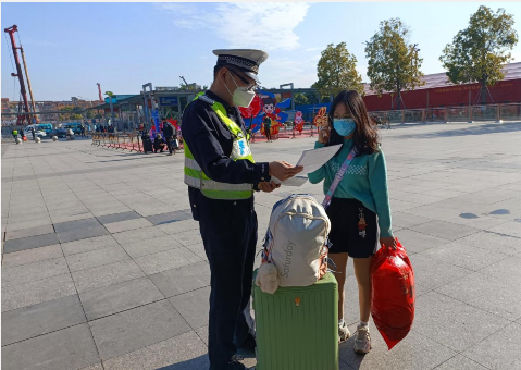 最后,该交警大队还联合辖区人力资源分局在东莞火车站开展“平安回家 相约东莞”的宣传活动,通过设置展台,向途人派发传单等方式开展交通安全宣传教育,明确每个人都是自己安全的第一责任人,自觉遵守安全法规,拒绝乘坐病车、超员车辆、拒绝疲劳驾驶,平安才是最近的回家路。