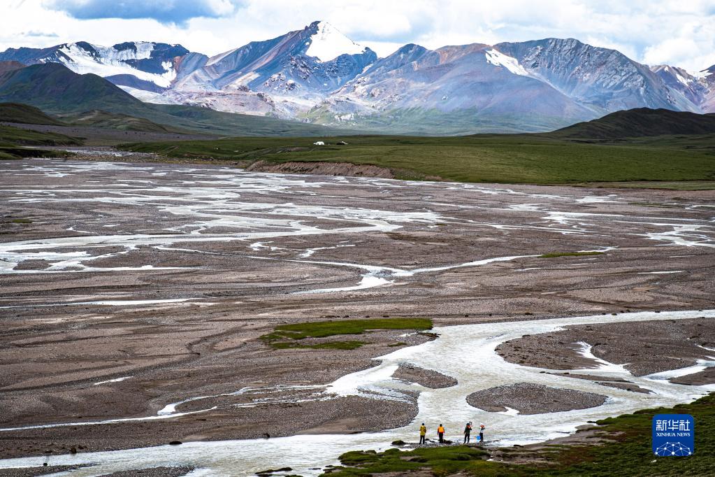 2022年7月26日,来自长江科学院的科考队员在长江源区进行科考工作(无人机照片)。新华社记者 肖艺九 摄