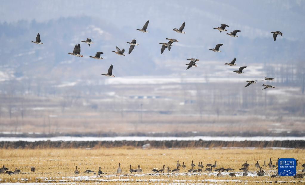 这是在吉林省珲春市敬信湿地拍摄的大雁(2020年3月3日摄)。新华社记者 许畅 摄