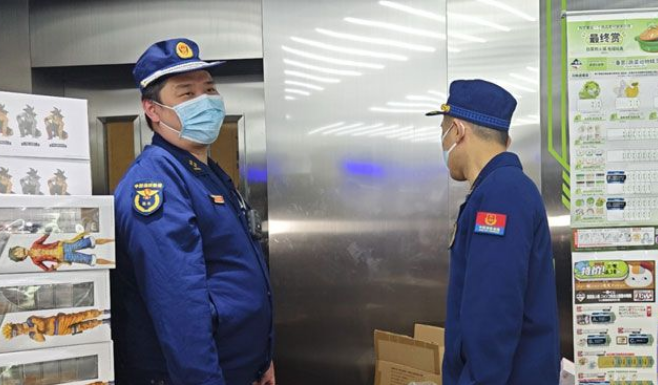 作为东莞市中心大型综合体商圈之一,民盈国贸城聚集了不少市民前来游玩购物,如果发生意外将造成难以估量的后果。检查组一行首先对底下两层的小型餐饮店进行检查。这些餐饮店面积狭小,烹饪窗口和用餐区域仅有一墙之隔,因此需要时刻注意消防安全。检查过程中,检查组发现各餐饮店都能自觉使用电磁炉、电热灶等非燃气设备进行烹饪。但仍有个别商家疏忽对消防器材的管理,定期维护卡上显示距离上次维护时间已经相隔较长时间。对此,检查组教育餐饮商家应定期维护消防器材,并要求商场管理方加强监督管理工作。除餐饮店外,检查组一行还抽查了部分玩具、时装店铺,检查店内商品摆放和灭火器存放情况。在一玩具店内,大量货物堆积在角落,将灭火器遮挡,检查组对此要求店内立即整改,并对店员进行消防安全教育。