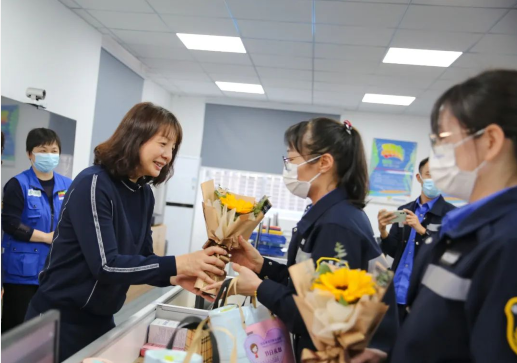 随后,慰问组前往南城胜和社区智慧网格管理工作站,慰问女性网格员,与她们深入交谈工作生活情况,并送上节日鲜花和爱心礼包。