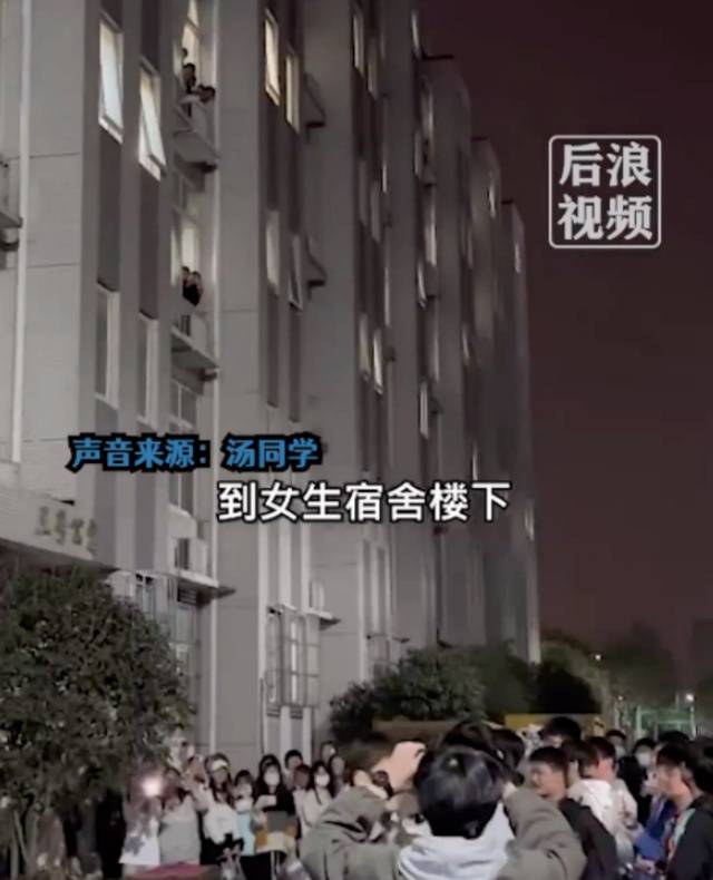 视频中,一众男生在女生宿舍楼下喊“节日快乐”“天天开心”!有些女生走出楼栋接受祝福,有些女生从宿舍窗户探出脑袋往下面看,画面很是热闹。