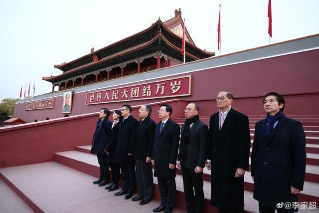 17日,李家超和团队一同到天安门广场观看升旗礼。图片来源:李家超微博