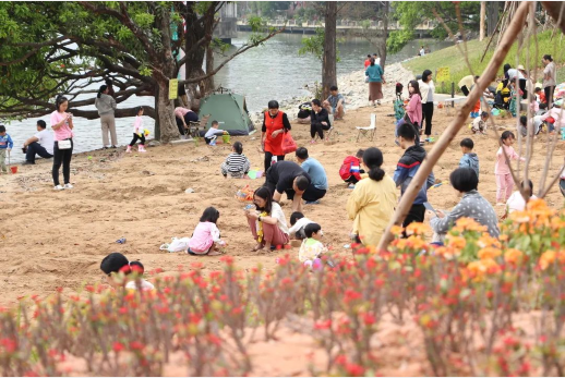 日前,记者走进道滘沿江公园,只见沙滩上游人如织,绿道上繁花似锦,春意盎然,人们或在绿道上跑步、骑行,或三五知己在草坪上露营,也有一家大小在儿童天地游玩,处处充满欢声笑语。游戏场地内配置了沙坑、戏水设施,在保障安全的前提下,配置了满足儿童摇摆、攀爬等需求的游玩设施。