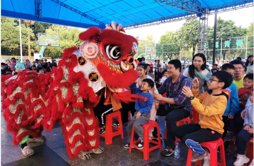 文化节现场,随着铿锵有力的锣鼓声响起, 醒狮表演正式开始。憨厚可掬的“狮子”在人群中欢腾,为群众带来了木凳采青、爬高杆采青等一系列精彩的表演,群众纷纷拿起手机记录下精彩的瞬间,赢得了阵阵喝彩。