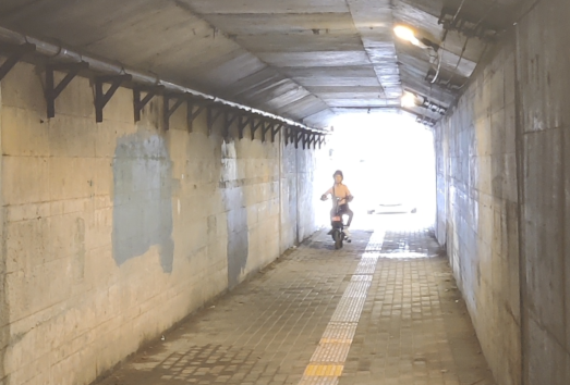 据悉,上述提及的隧道位于石龙镇较繁华地段,周边居住氛围浓郁。隧道内,骑车及走路穿行的市民较多,特别是放学时间段,有较多的家长和学生骑着自行车穿过隧道。