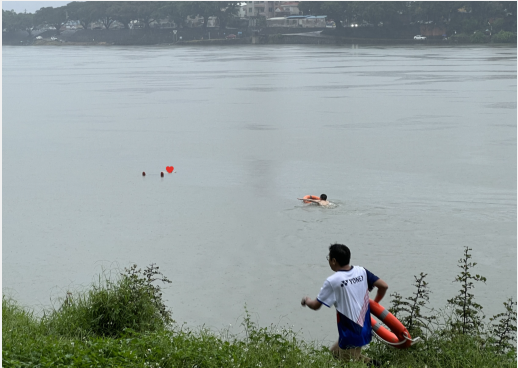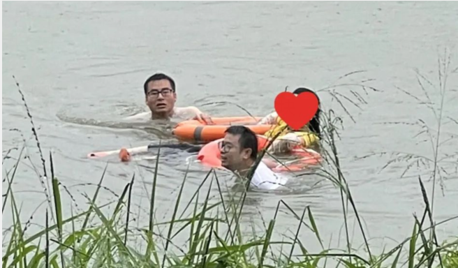 6月16日16:46,“龙舟水”来袭,此时田寮村石洲大道西网格管理员陈镇海和王海东联同田寮村“两委”干部陈惠傍正在东江大堤田寮段进行防溺水巡查,突然听到微弱的求救声。警觉的他们迅速循声望去,只见一女子整个身子淹没在江里,只剩下半个头部浮在水面,正随着江水漂浮。
