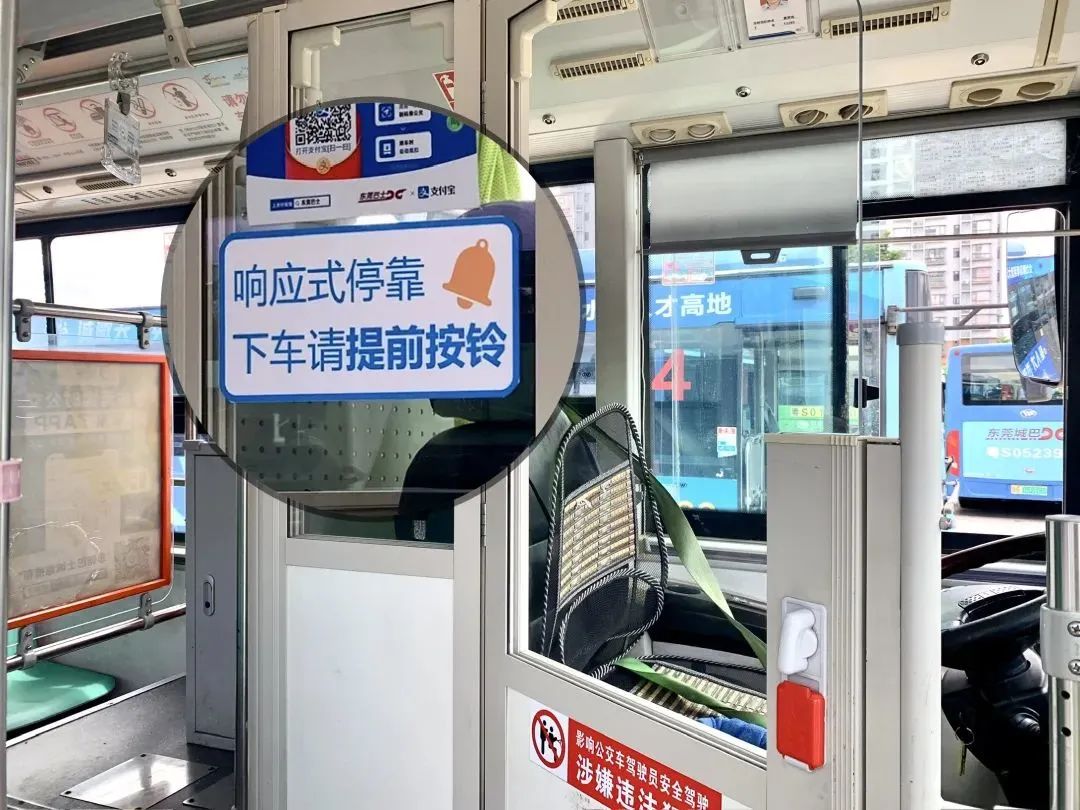 在“响应式停靠”线路的各台车上均会张贴相关标识标语,具体位置为车辆前挡、前门后门、驾驶舱内门、爱心座椅上方车窗、后排座椅上方车窗等。
