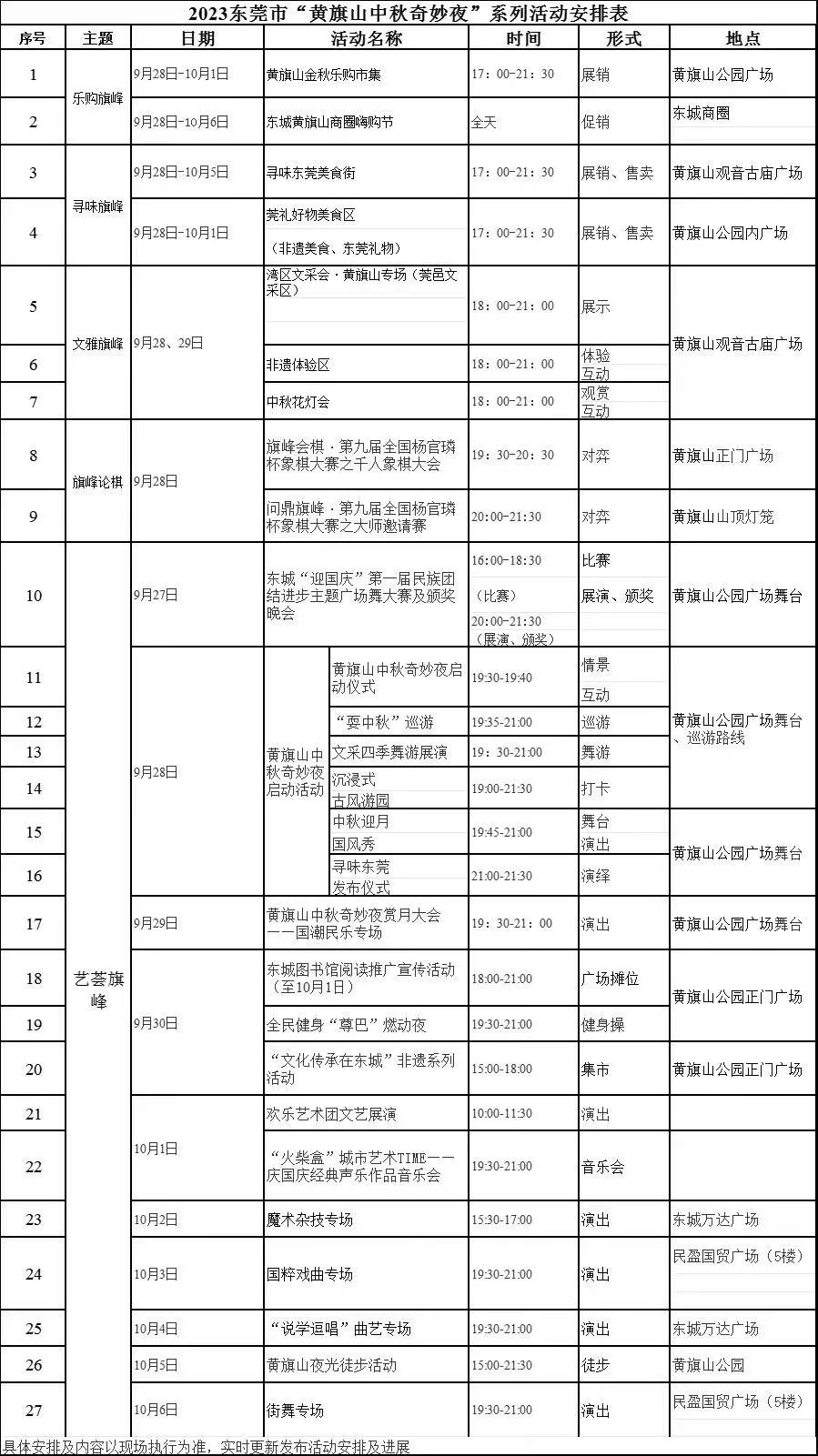 活动一览表