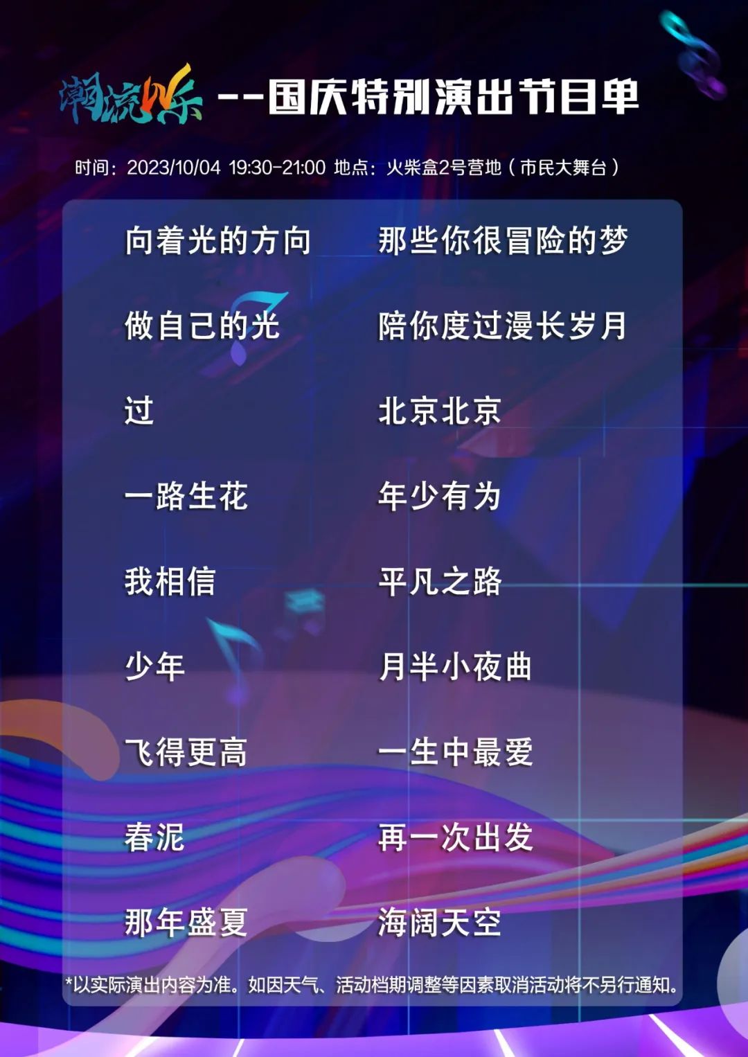 演出地点:火柴盒2号营地(市民大舞台)