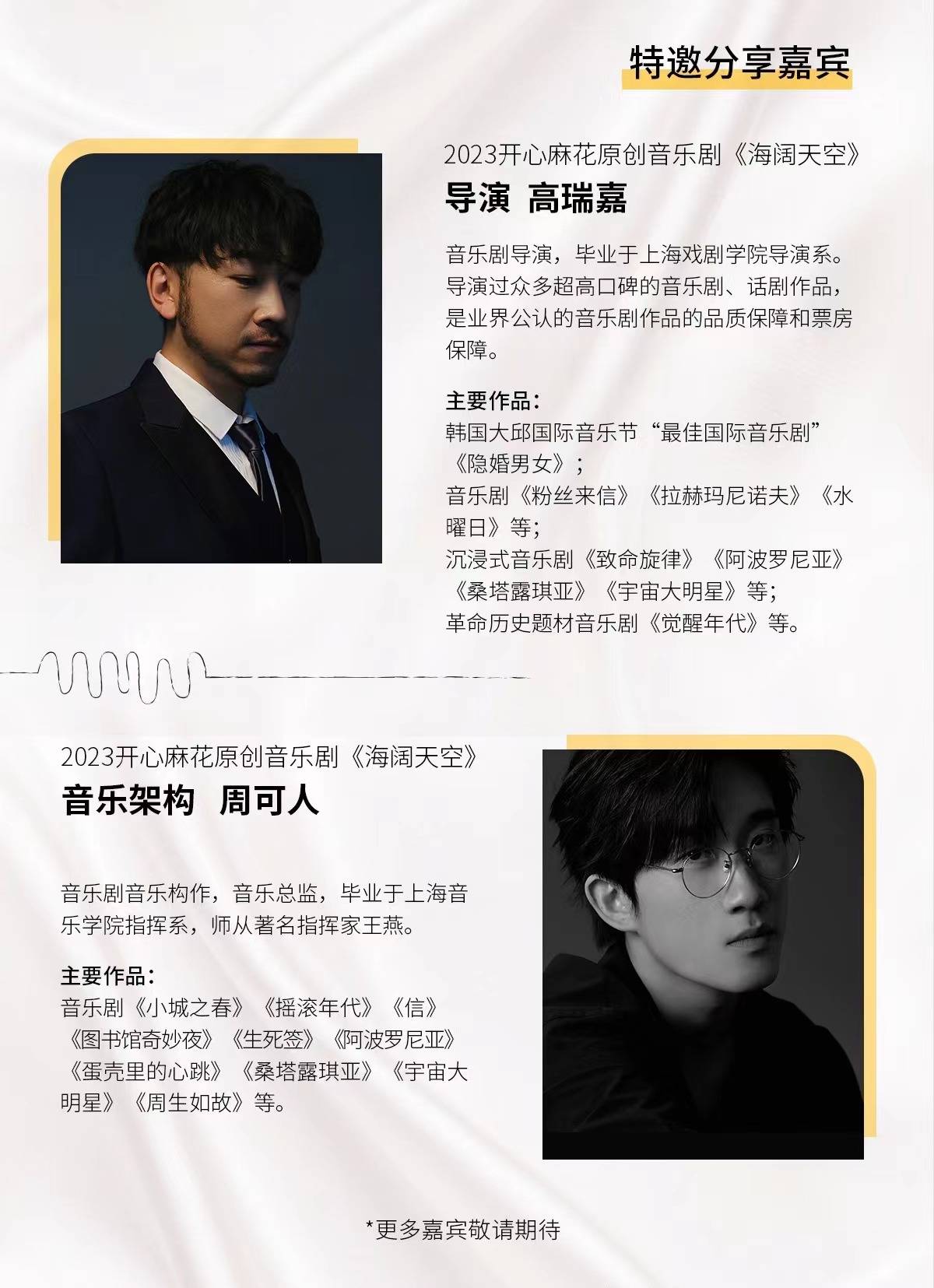 开幕式上除了本届喜剧生活节的亮点介绍与启幕仪式外,还将现场呈现开幕大戏《贼想得到你》精彩片段,更有广东省委宣传部2023年重点文艺精品创作项目、与开心麻花联合打造的原创音乐剧《海阔天空》的项目发布和主创座谈,力求呈现一场集仪式感与艺术性于一体的开幕盛典。