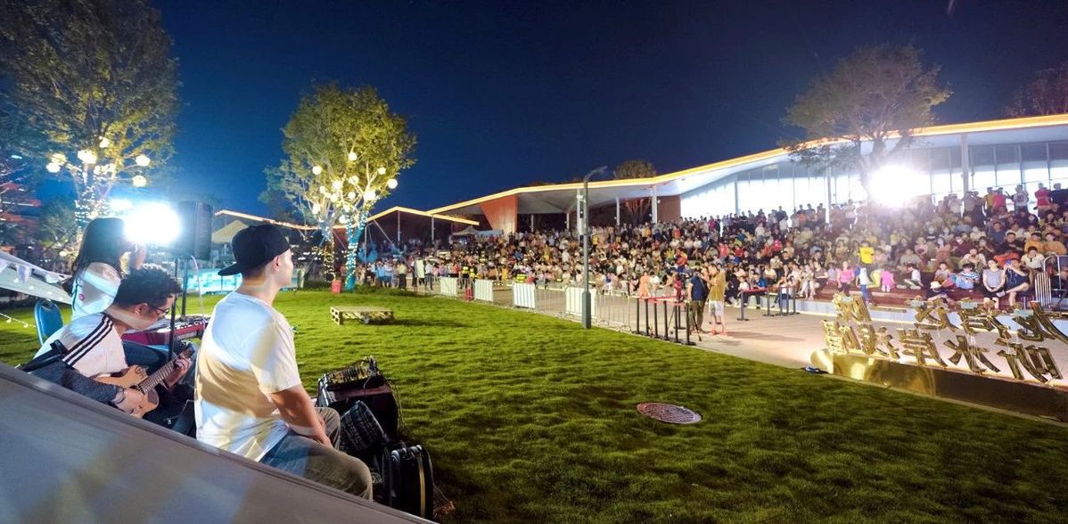 这个区域场地周边为居民区,改造现有咖啡吧、烧烤店及周边环境,增设服务周边的儿童及健身活动场地,满足人们健身、娱乐、锻炼等多种需求。富有乐趣的剧场空间,草坪、绿树与观众席结合,在大自然中欣赏表演,是对心性的陶冶。