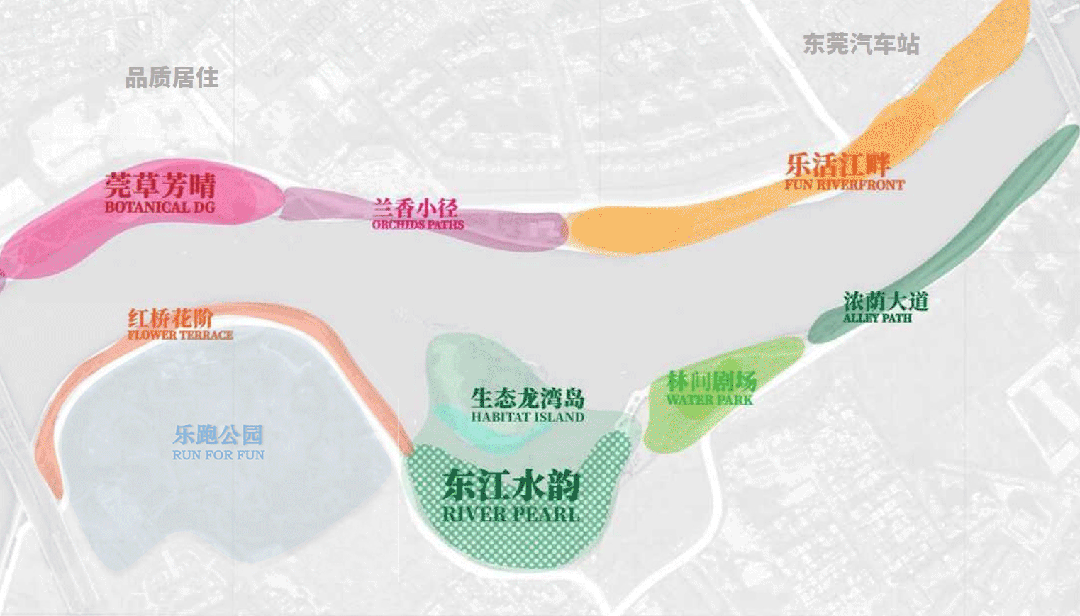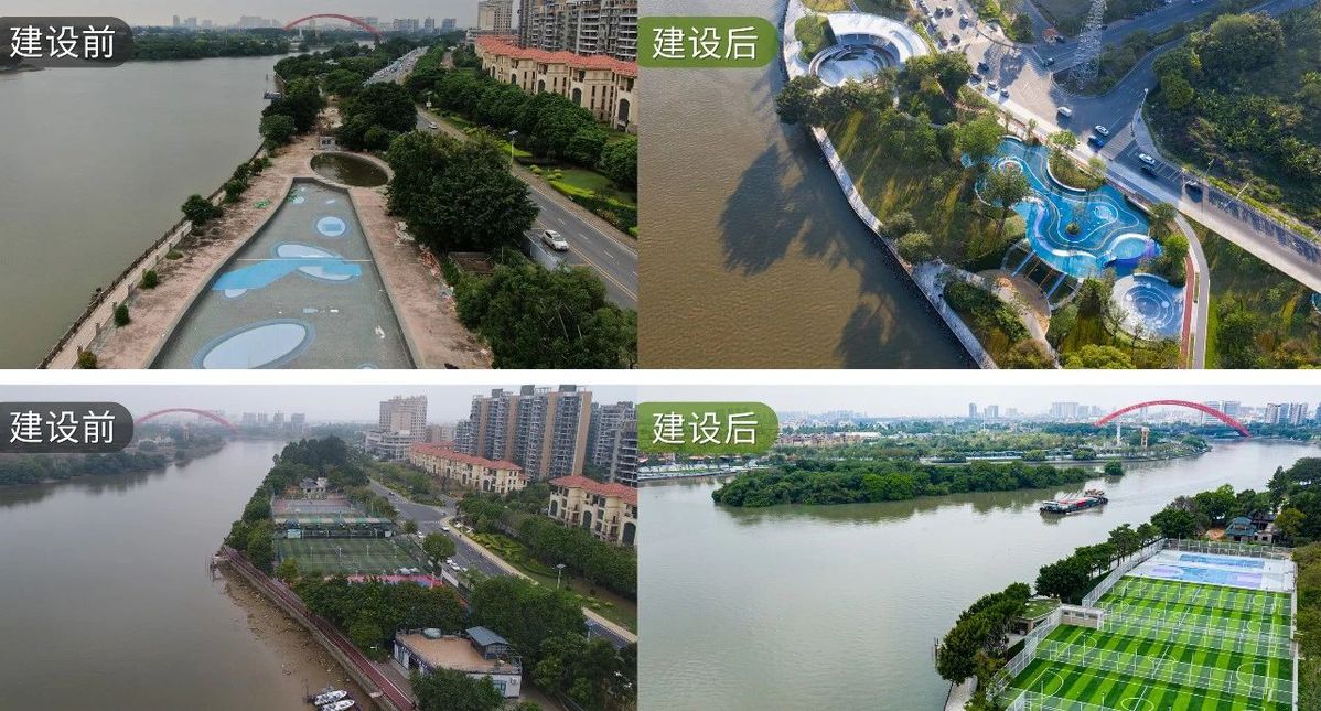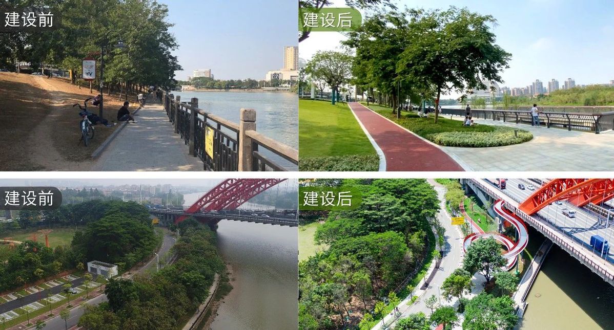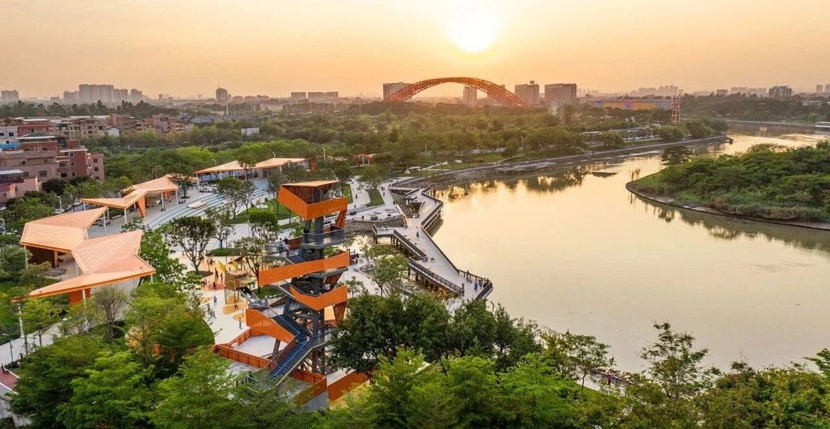 岭南股份对标国际高品质滨水岸线建设标准,建设提升重点包括范围内滨水慢步道、跑步道、骑行道 “三线”贯通;东江水韵、乐活江畔、莞草芳晴、林间剧场四大活力节点;曲海大桥慢行坡道、东莞水道特大桥慢行坡道、新增人行桥建设,以及景观龙塔、儿童乐园、城市展厅、亲水平台等一系列休闲生活场景。