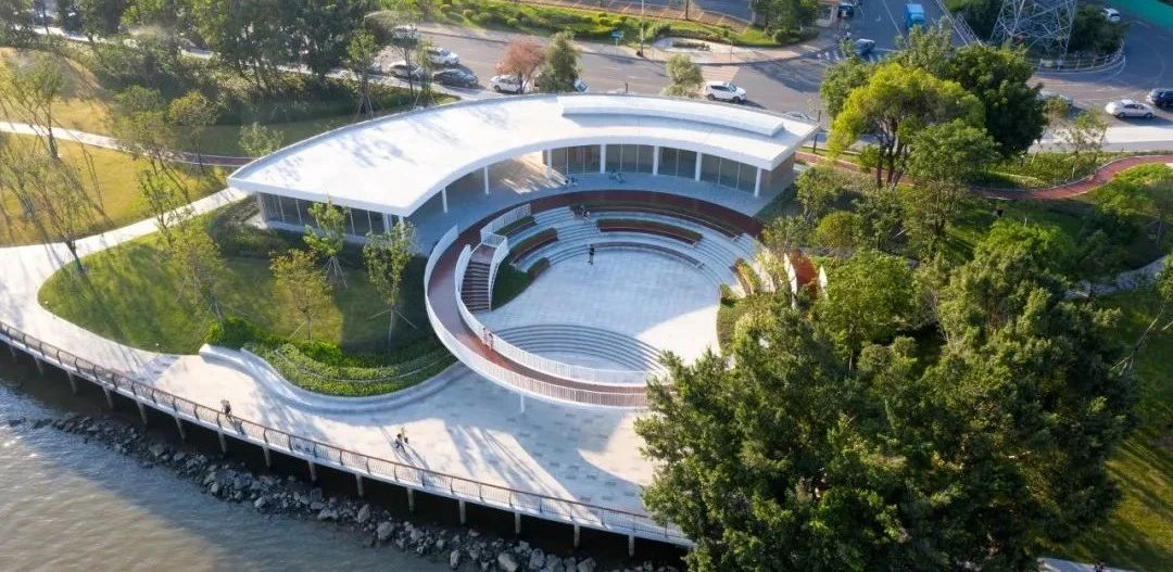 这个区域保留长势良好的大树及原有疏林草地,增加特色开花植物,它们随着四季变化,吸引人们来到这里,提升改造公厕、小卖部、龙舟屋为综合服务驿站,让它们也成为岸线的点缀。结伴骑行、嬉戏、慢跑,感受江风拂面,让人们忘却烦恼,释放压力,享受乐趣。