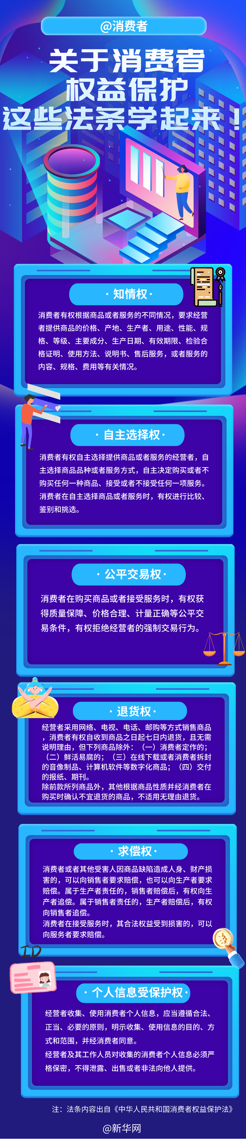 今天是国际消费者权益日,作为消费者,我们只有熟悉和掌握消费者权益保护法中与我们日常生活中密切相关的法律条文,才能了解自己有哪些权利和义务,在受到不法侵害时依法维护自身的合法权益。我们一起学习一下。