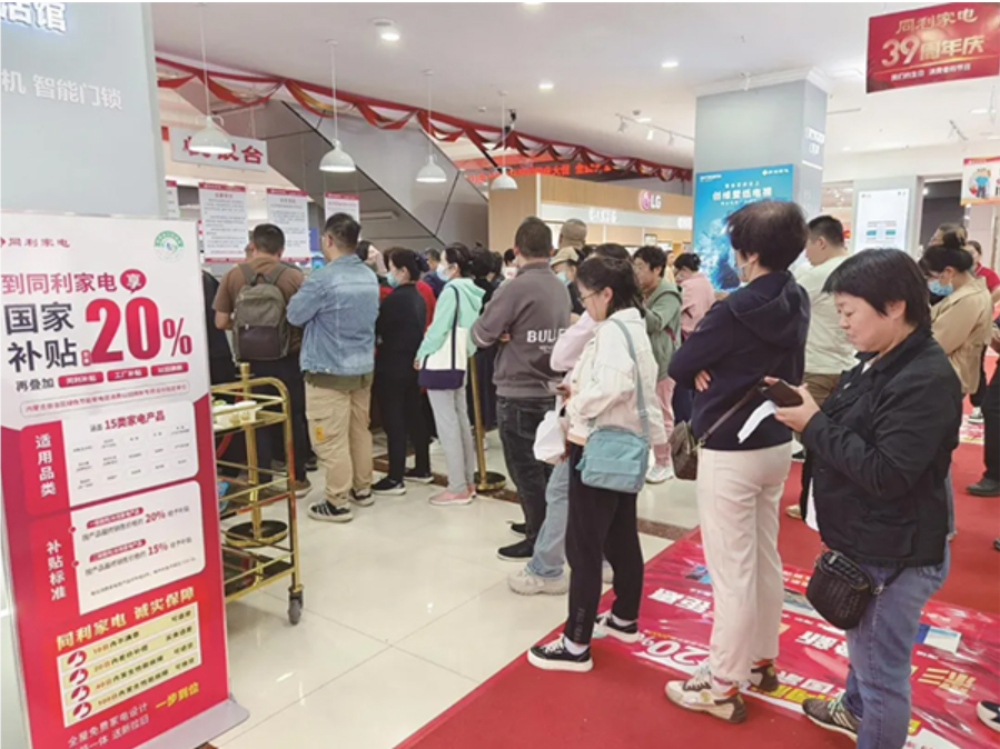 同利家电作为内蒙古地区家电零售头部企业,受以旧换新活动拉动,目前一级能效的产品在整个销售的占比里已占到了77%,二级能效的产品占比在11%,包头同利家电总经理祁莹表示,“以旧换新活动开展后,对门店销售拉动明显,同比销售增长达到35%;冰箱现在一二级能效的销售占比达到了82%,较之前提升了21个百分点;洗衣机销售同比增长77%,一二级能效的数量较之前提升了28%,彩电一二级能效产品销售占比在38%,比以前提升了8个百分点,空调的一二级能效产品销售占比达到55%,较之前提升了50%。空调增长的特别快,因为包头夏天没那么热,过去对空调需求并不高,以前空调销售可能占我们整体销售额只到七八个点,通过这一次的国家以旧换新补贴,拉动了空调的销售占比。”